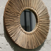 Breng een vleugje kustsfeer in huis met deze prachtige wandspiegel van Alang Alang gras. De spiegel wordt omlijst door met de hand aangebracht natuurlijk gras, wat zorgt voor een speels, organisch silhouet dat perfect past binnen een boho chic of mediterraans interieur.