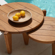 De Seseh Salontafel combineert moderne vormgeving met natuurlijke elegantie. Het karakteristieke driepoot-onderstel geeft deze tafel niet alleen stabiliteit, maar ook een speels, sculpturaal effect dat direct in het oog springt. Gemaakt van duurzaam gerecycled teakhout en afgewerkt in een warme, natuurlijke tint is dit de perfecte blikvanger voor je terras, tuin, balkon of binnenruimte.